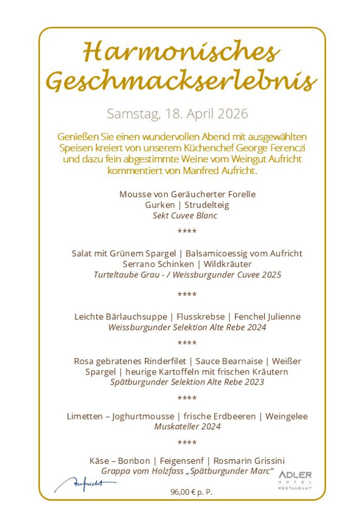 6 - Gang Menü mit Weinbegleitung vom Weingut Aufricht