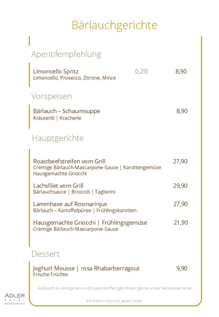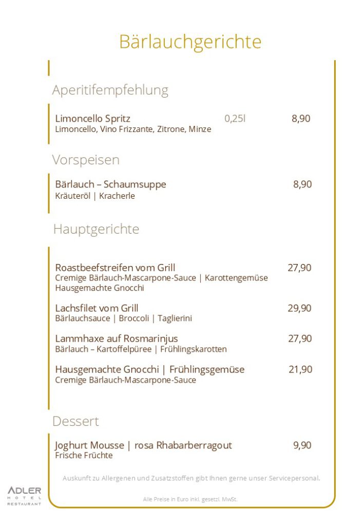 ... mit frischen Bärlauchgerichten ab Freitag, 13. März