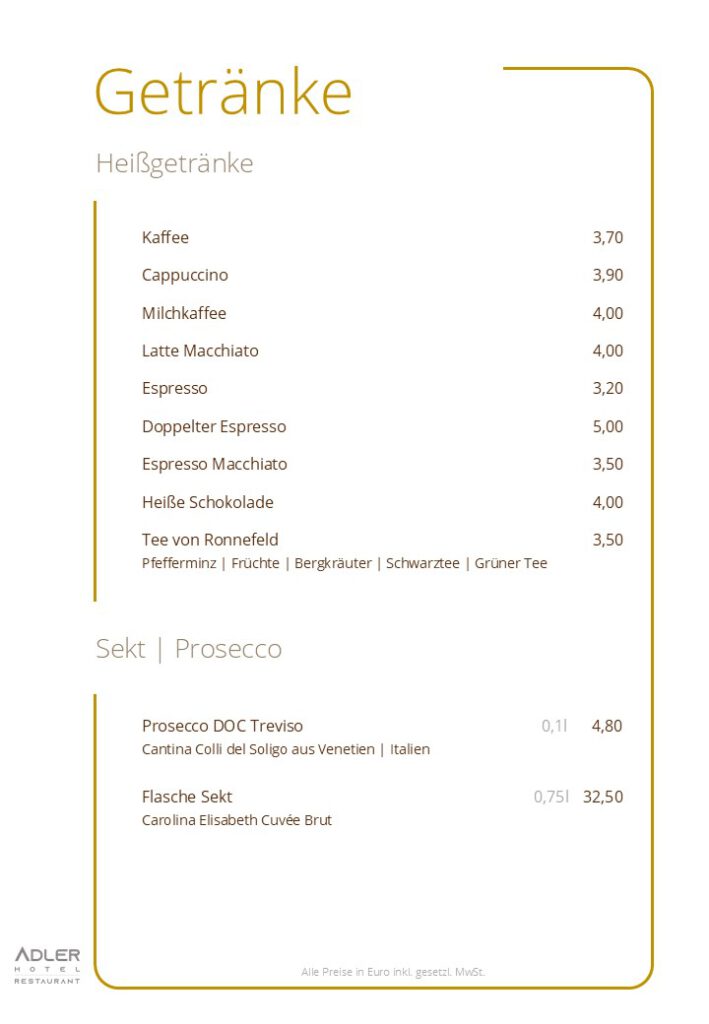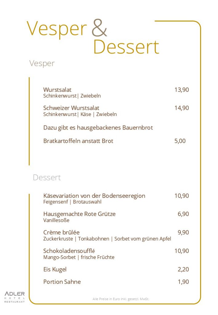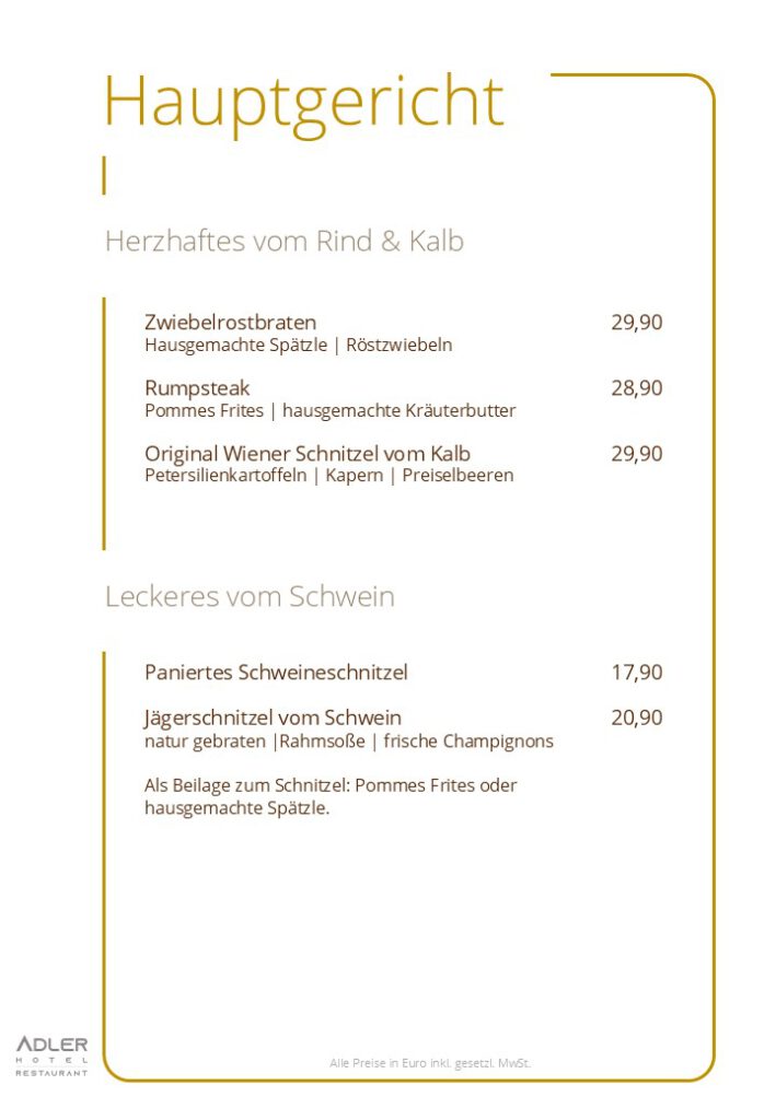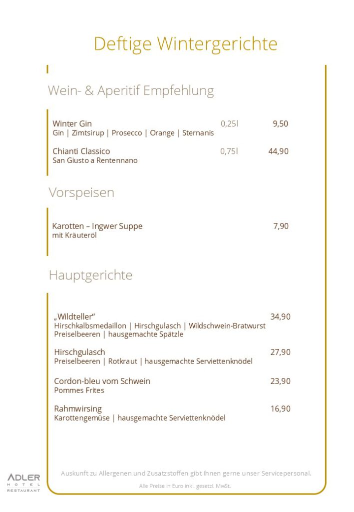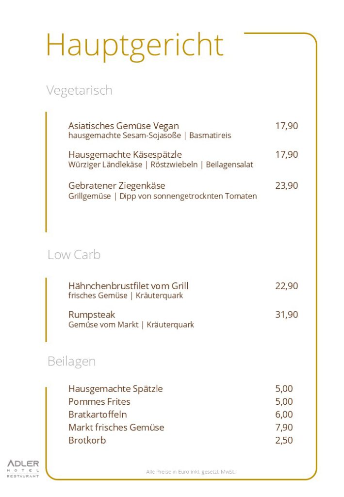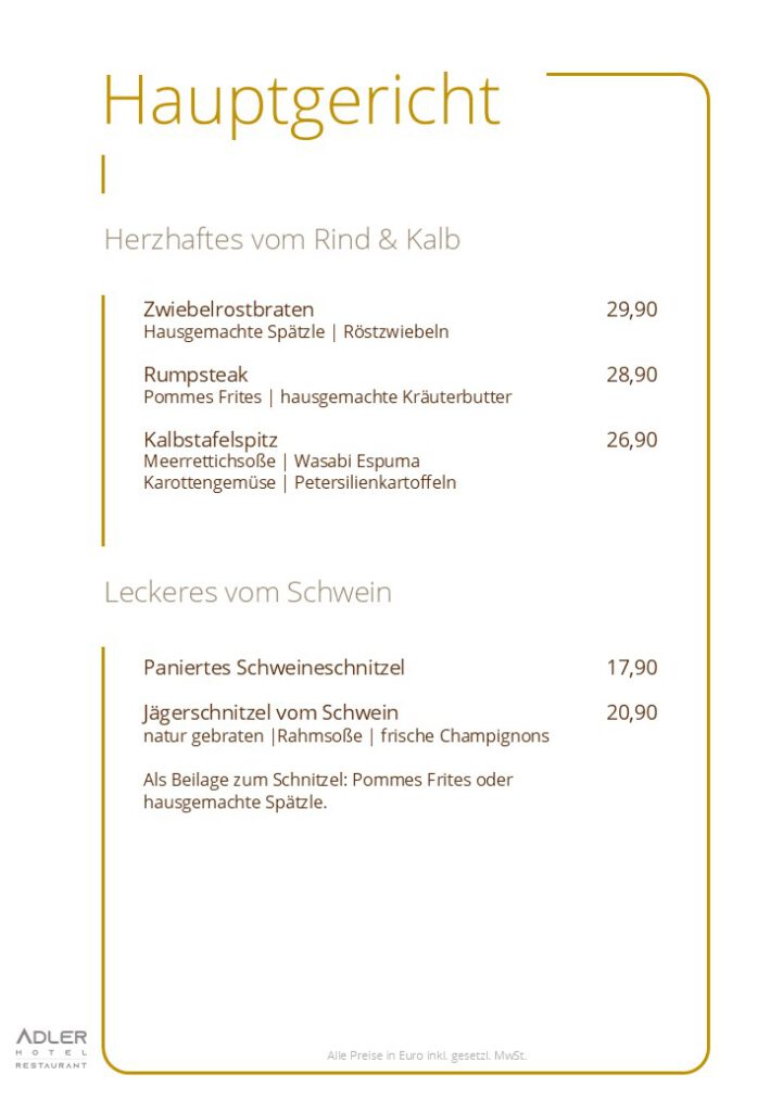 (Küche 11:30 – 14:00 Uhr & 17:00 – 21:00 Uhr)