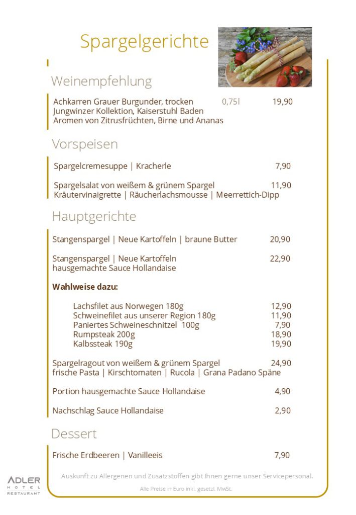 Wir kochen für Sie mit viel Leidenschaft Gerichte aus der Region und saisonale Highlights.